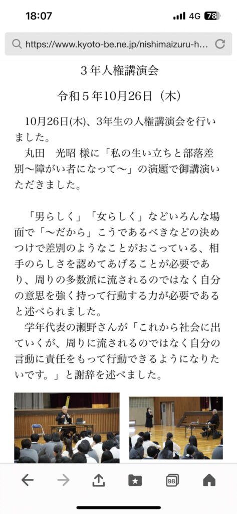 【掲載御礼】西舞鶴高校のホームページに掲載頂きました。