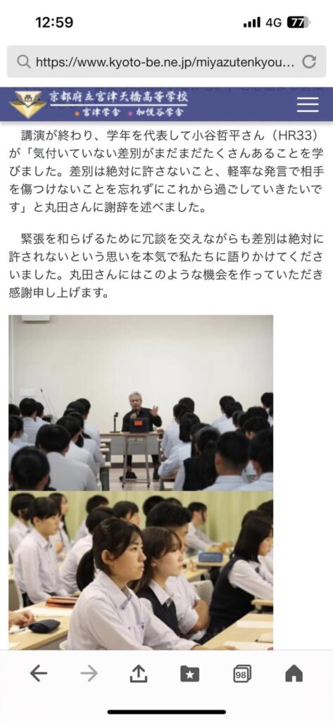 【掲載御礼】宮津天橋高校のホームページに講演風景が掲載されました。